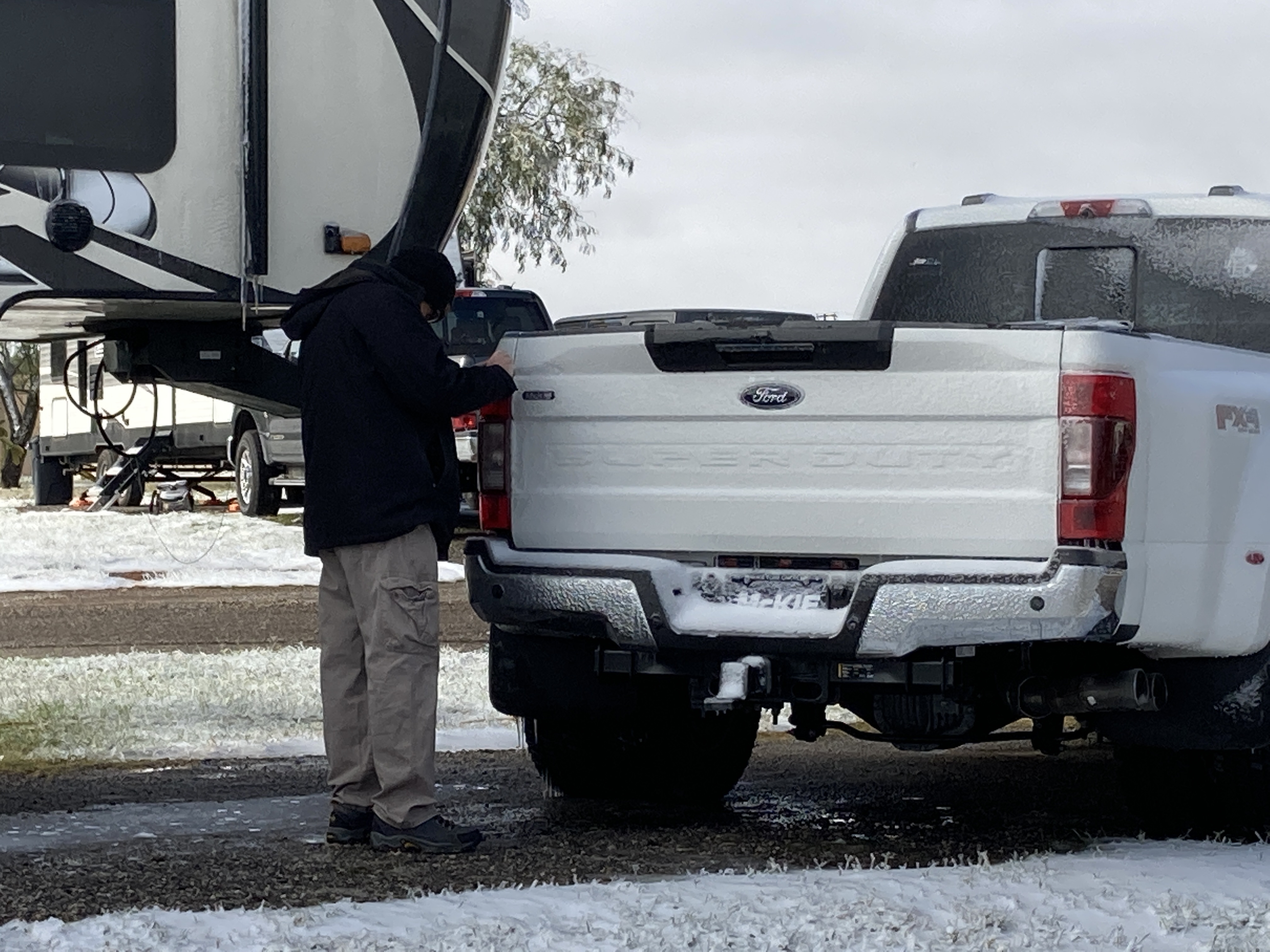 Over the last 2 weeks, we have traveled through Colorado and New Mexico, and currently in Sweewater , Texas. Woke up to the roads being iced over. Supposed to travel today— decided that would not be so smart, so we are staying put for 2 more days. Ice storm warning until tomorrow morning. Got some interesting video of air bubbles floating under the ice as the ice is slowly melting.